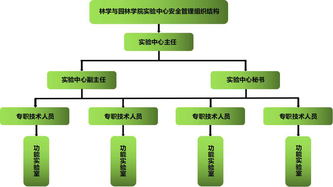 1. 总负责人:中心主任,全面负责组织实施各项中心工作,如总体规划的编制实施、实验室改造及大型仪器的添置、校外教学实习基地的筹建;组织开展实验室安全管理规范建设等;